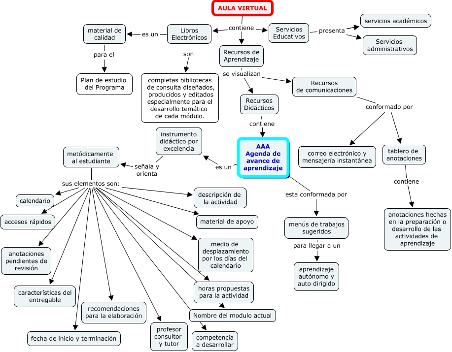 mapa sobre el aula virtual y primordialmente la AAA